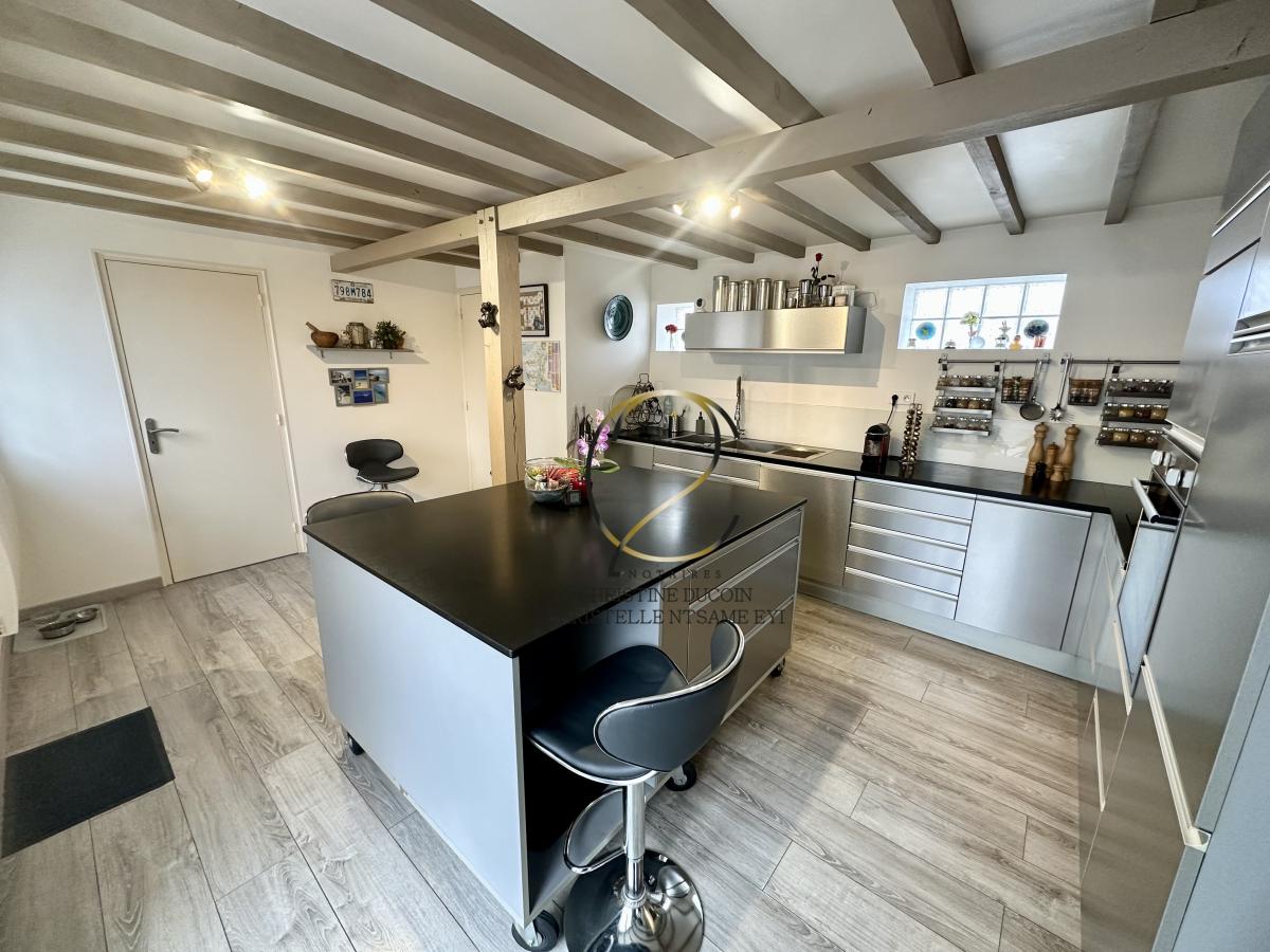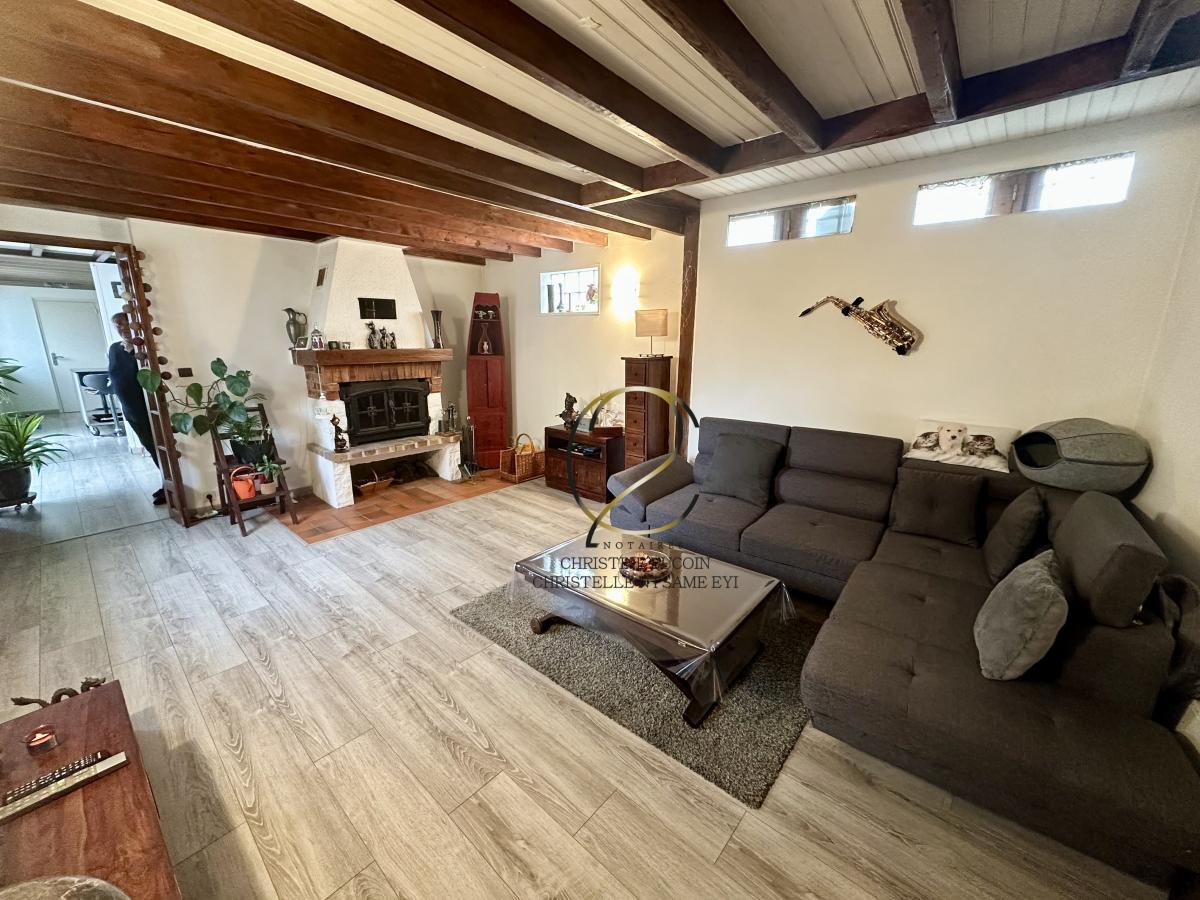 Une vaste entrée avec rangements, une cuisine équipée dinatoire avec cellier, un séjour avec cheminée, un WC indépendant, une chambre, une salle de d'eau ainsi qu'une buanderie.
