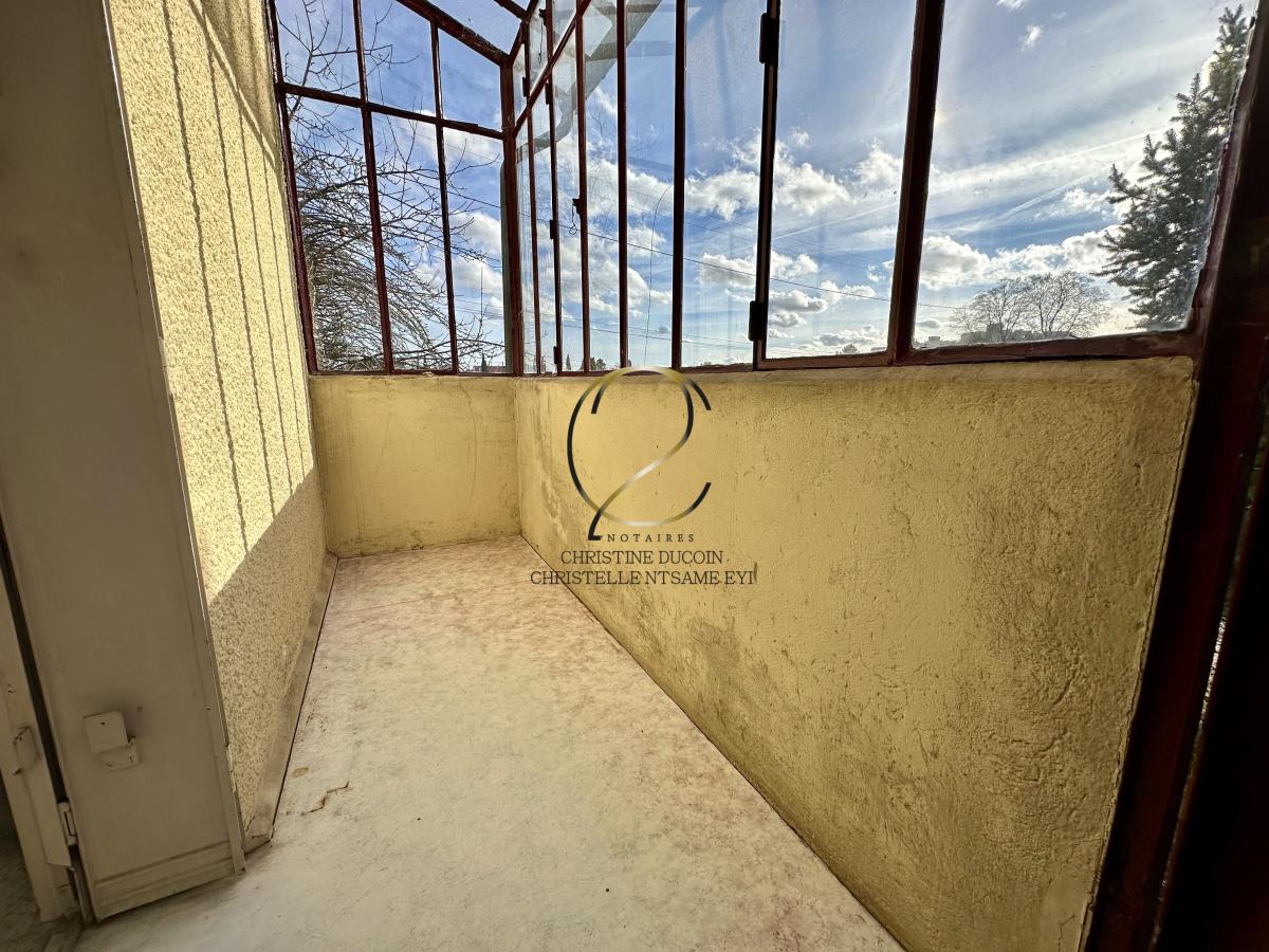 Un dégagement desservant un séjour double traversant avec cheminée marbre, une cuisine avec accès véranda, une chambre ainsi qu'une salle d'eau avec WC.
